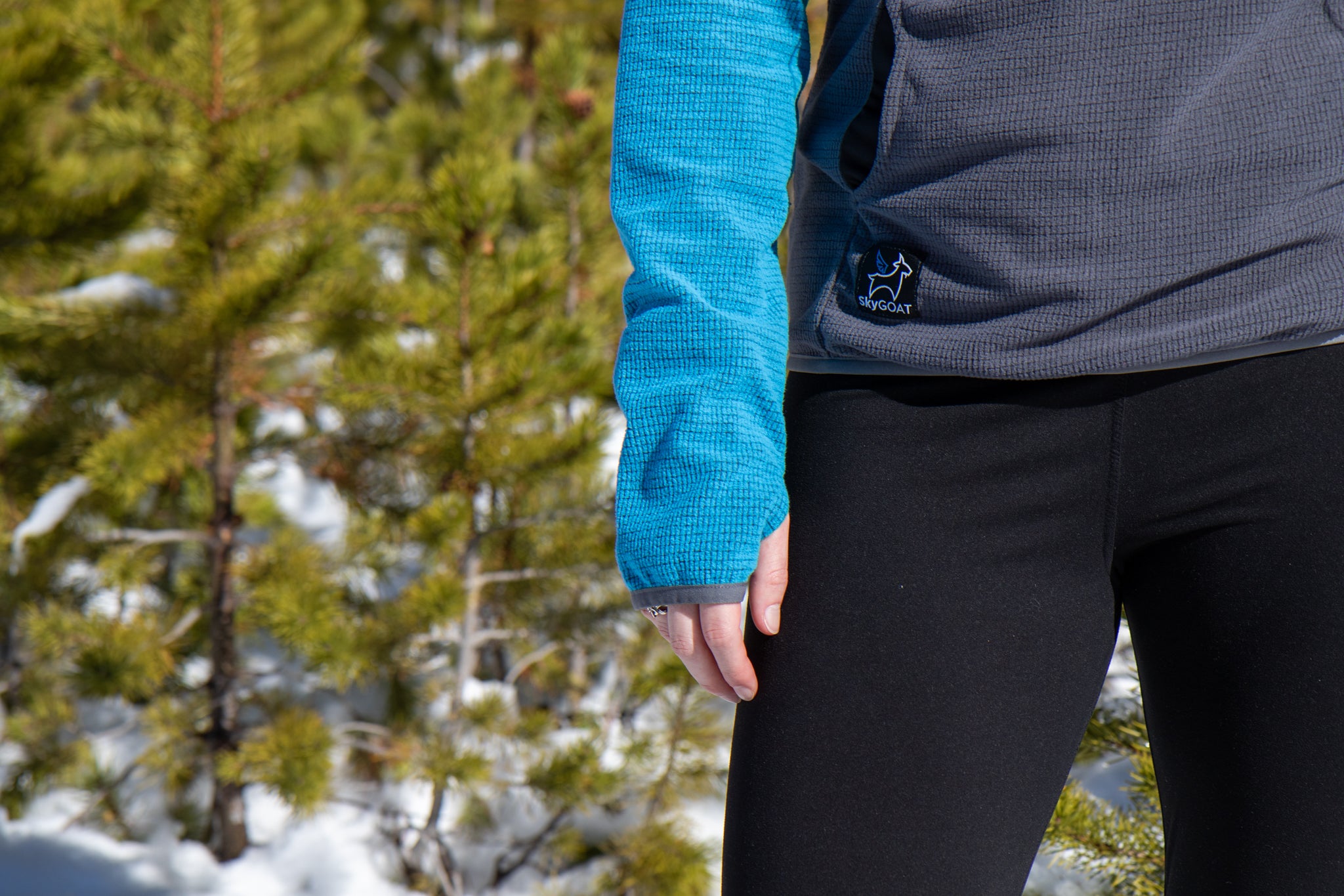 Women's SkyGOAT hoodies and jackets are designed and cut for the shape of a woman's body.