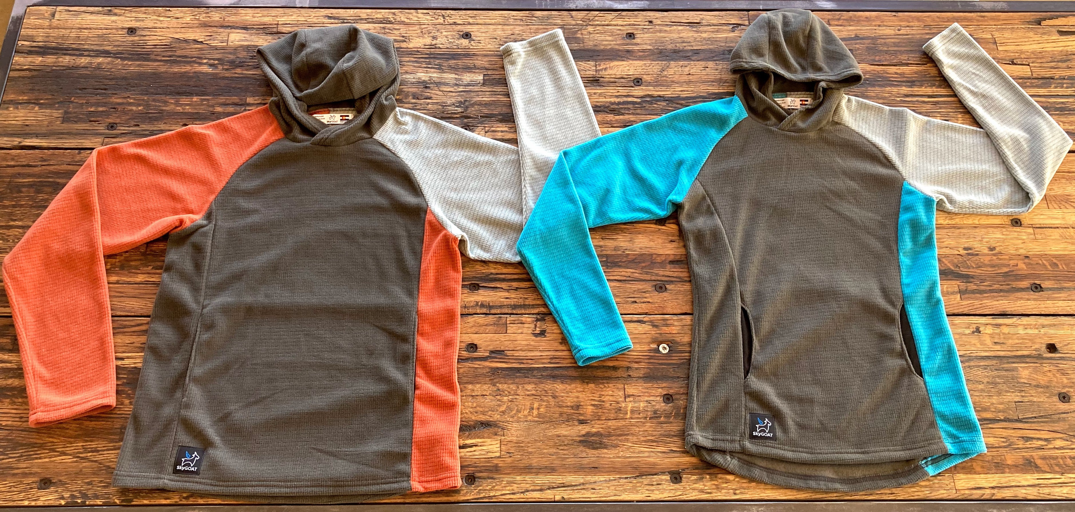 So, I decided to take matters into my own hands and create the apparel that I had been searching for. Armed with a stack of tops from my closet that included the features I liked, I created a frankenstein pattern using paper grocery bags and got some sewing pointers from my wife to create the first sample hoodie. From there, I worked with a small manufacturer to create a custom GOATgrid fleece and bring SkyGOAT to life.