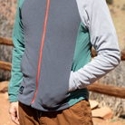 Hood is strategically positioned at the collar's base, to keep it out of the way when you don't need it, but still have the ability to zip up the collar and keep the chill off your neck. The fusion of the zipped collar and the hood with elastic trim offers wind and element protection, creating a comfortable opening for your face.