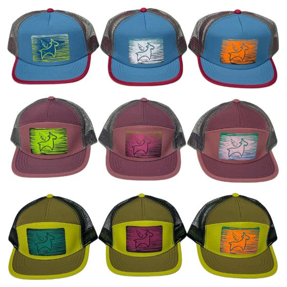 Our friends at Recaps specialize in making cool art that is applied to the hats. The SkyGOAT logo was hand carved on a block and then printed with various colors.