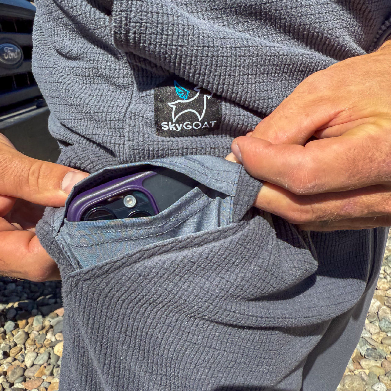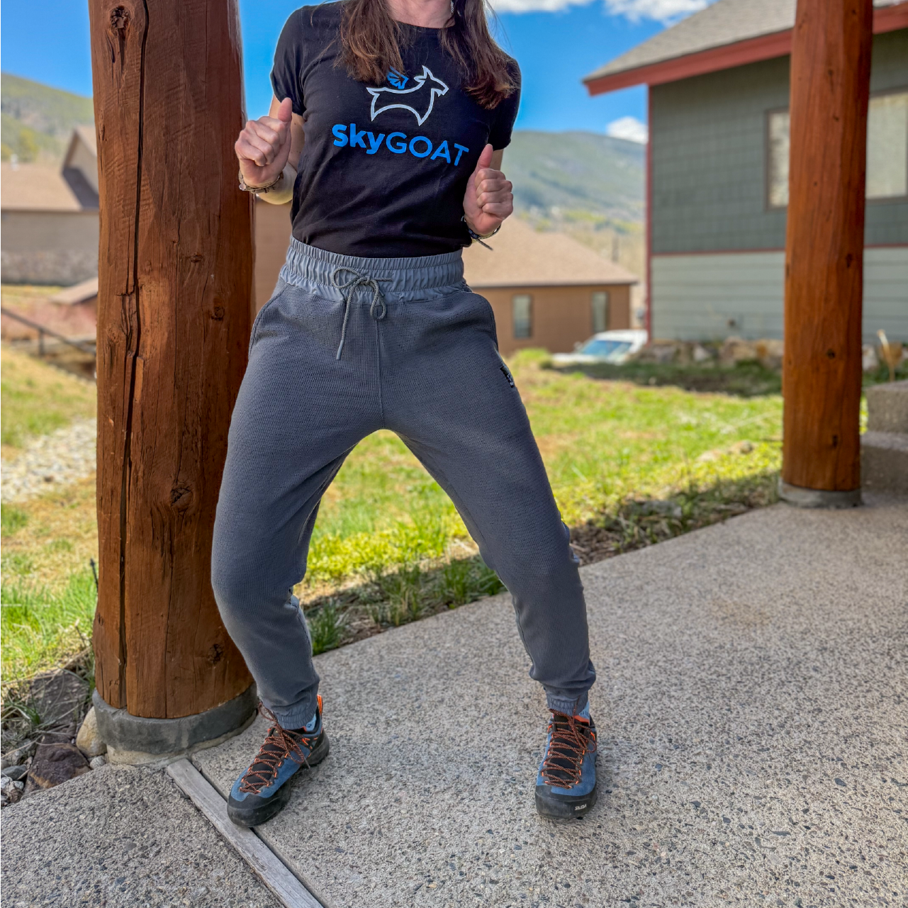 Women's SkyGOAT hoodies and jackets are designed and cut for the shape of a woman's body.